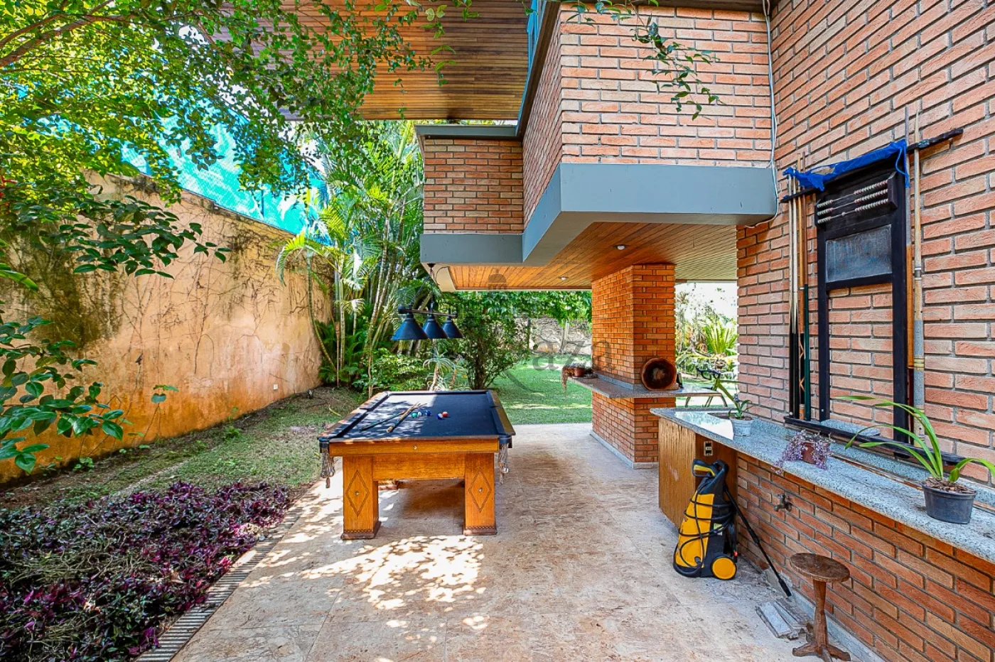 - Jardim exuberante com gramado e árvores frutíferas